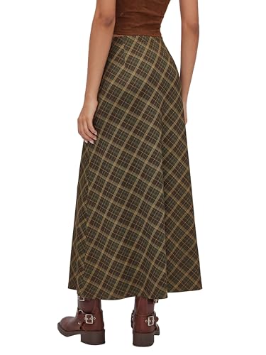 HOT ! CIDER Women's Plaid Maxi Skirt A-Line Pleated Fall Fashion Gingham Skirts Going Out Cute Trendy Casual Vintage Outfit