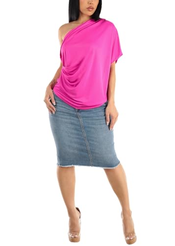 Moda Xpress Women's Stretchy Butt Lifting High Waisted Slim Fit Stylish Knee Length Soft Denim Pencil Skirt 6