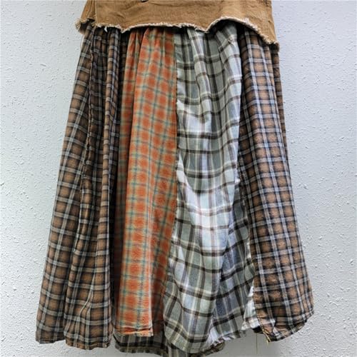 More information about Women High Waisted Plaid Midi Skirts Patchwork Long Jeans Skirts