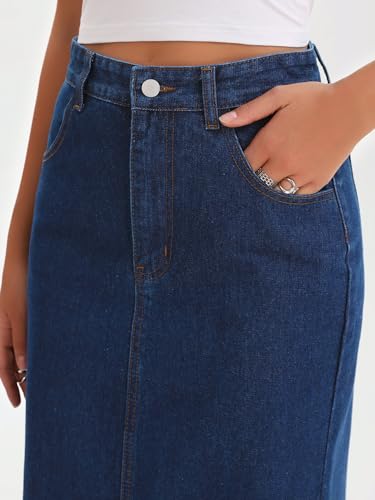 • Classic and Fashion Style: Elevate your look with this high-waisted denim midi skirt