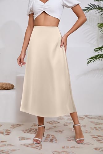 Women's Long Satin Spring Summer Skirt Silk Glossy Elegant High Waist Elastic Waistband A-line Midi Skirt 6