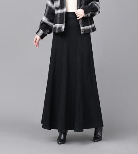 HOT ! Womens Winter Soft Knitted Long Skirt Vintage High Waist Fall Elegant A-line Midi Pleated Skirt