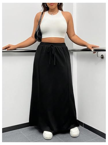 More information about OYOANGLE Women's Plus Size Elastic Drawstring Waist Straight Long Skirt Basic Solid Casual Skirts