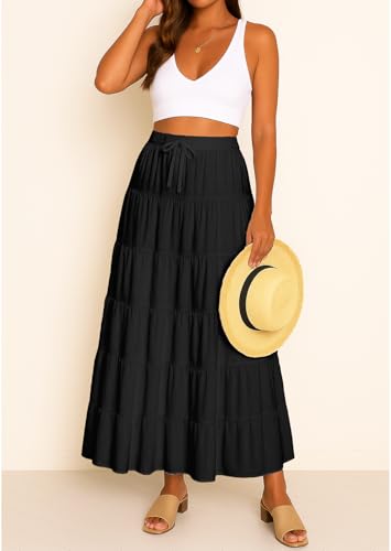 Women’s Solid Cotton Maxi Skirt with Pockets | Tiered 40-Inch Long Skirt | Elastic Waist Resort Wear | Summer Outfit 2