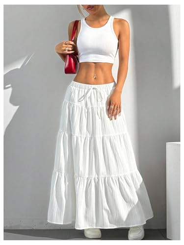 GORGLITTER Women's Plus Size Flowy Flared A Line Maxi Skirts Elegant Tiered Layer Boho Coquette Long Skirts 5