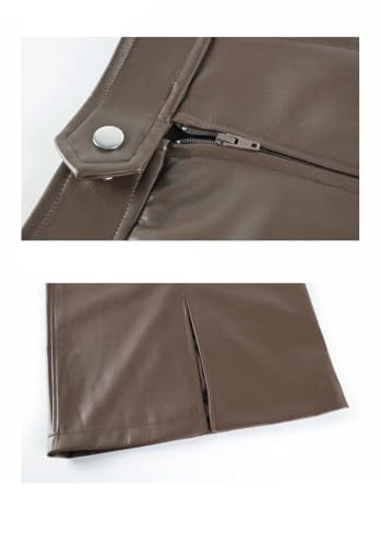 More information about Women Midi Pu Leather Skirt Long High Waisted Pencil Skirts Side Slit Zipper Skirt
