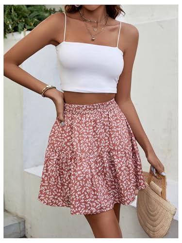 Women's Ditsy Floral A Line Mini Skirt Elastic High Waisted Ruffle Summer Boho Short Skirts 1