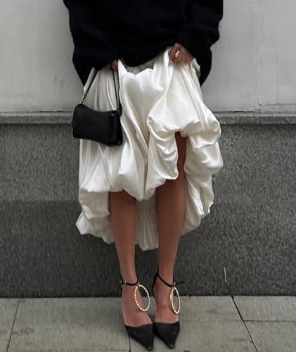 • Design: This low waist satin skirt features delicate ruffle pleats and a voluminous A-line silhouette for a dreamy, feminine look. The zipper high waist ensures a comfortable fit, while the flowy hemline adds a touch of elegance and charm, making it a must-have for trendy, Y2K-inspired outfits