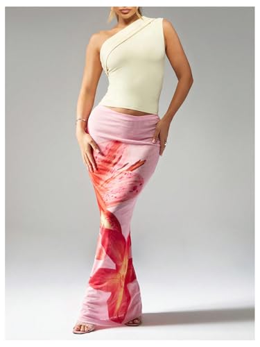 More information about Milumia Women's Floral Fishtail Mesh Maxi Skirt Elegant Low Waist Bodycon Long Skirts
