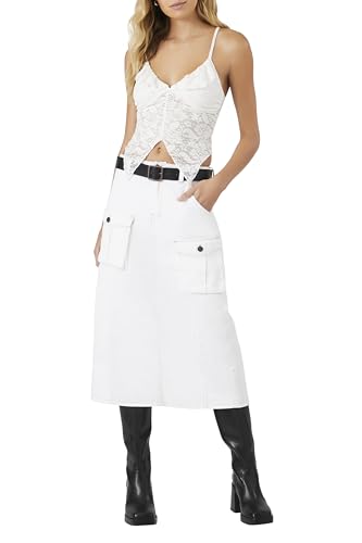 HOT ! Forever 21 Women's Belted Twill Midi Skirt