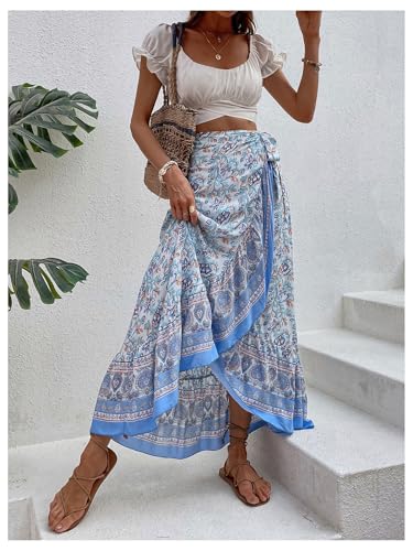 HOT ! Verdusa Women's Floral Print Bowknot Ruffle Maxi Skirts Boho High Waisted Flowy Wrap Skirt