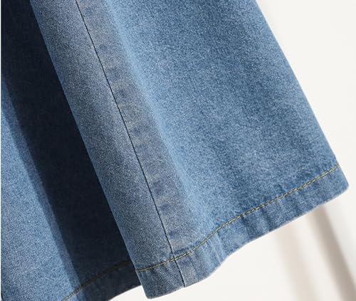 CHARTOU Women Pleated Jean Skirt Elastic High Waisted Midi Denim Skirt Flare A Line Skirt Ruffle Long Summer Skirt 4