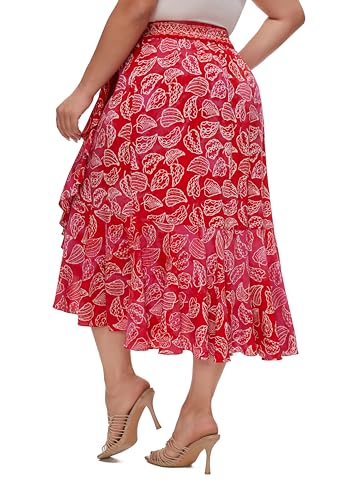 Beautybatik Women Hand Batik Floral Print Long Flowy Pleated Elastic High Low Ruffle Skirt XL 1X 2X 2