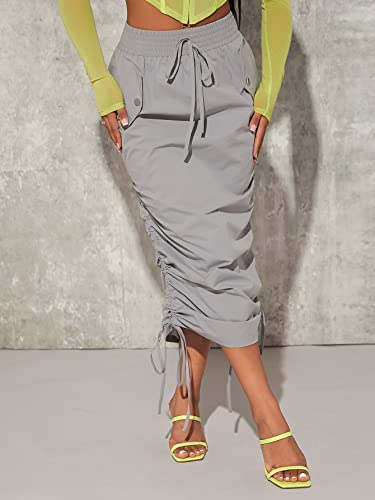 HOT ! Verdusa Women's Y2K Drawstring Ruched Elastic Waist Long Cargo Skirt with Pocket