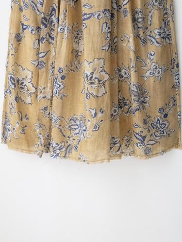 • ELEGANT DESIGN: Beautiful floral print midi skirt in a beige/tan base with navy blue floral pattern, featuring an A-line silhouette for a flattering fit