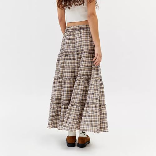 HOT ! Y2k Plaid Tiered Maxi Skirt for Women Vintage Gingham A Line Long Skirt Summer Ruffle Flowy Swing Midi Skirt