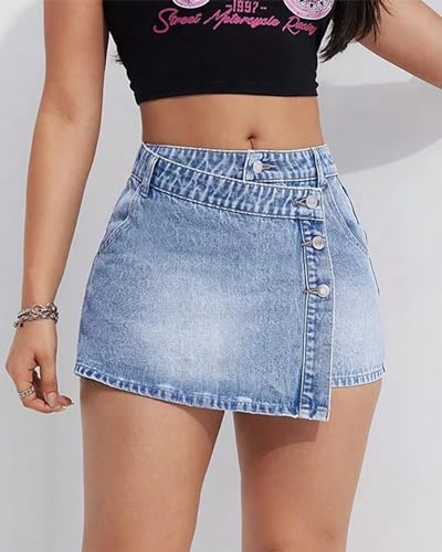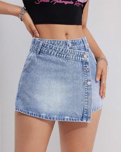 • 🩳【Authentic Rigid Denim】85% Cotton, 15% Polyester, non-stretch fabric holds its shape perfectly - develops personalized comfort over time without bagging,💥The denim skirt is run small, pls buy a large size.💥