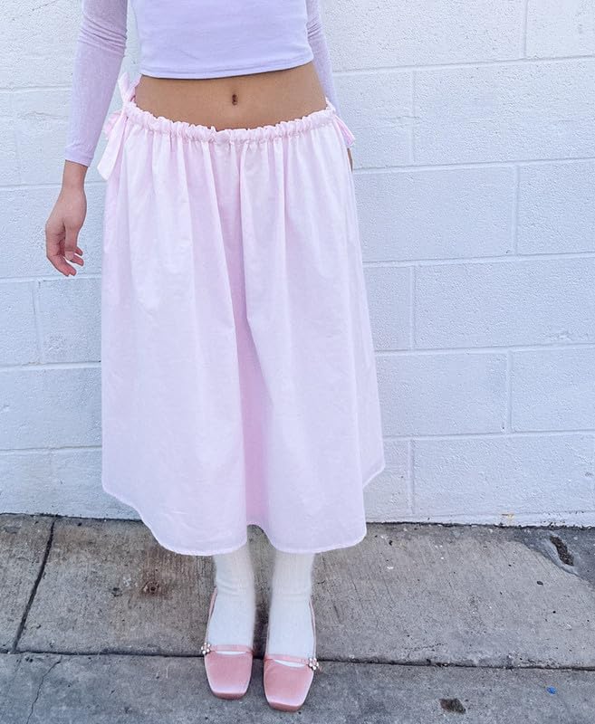 NUFIWI Women’s Summer Low Waist A Line Midi Skirts Elegant Flowy Swing Tiered Long Skirt Y2K Solid Color Beach Maxi Skirts 5