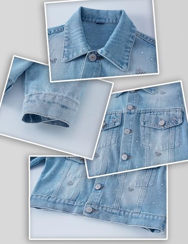 • Light blue vintage tone, classic lapel, symmetrical pockets, embellished with delicate small bow decorations and sparkling diamonds, adding a sense of playfulness and sophistication. A glittery denim jacket that is essential to a princess's closet.