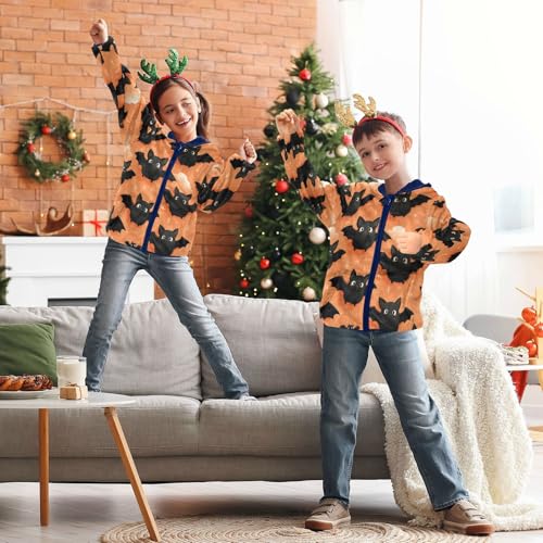 HOT ! Flying Bats on Orange Toddler Fleece Jacket Girl Boys Hooded Fleece Jacket Coat Warm Outwear Zip-up 3-10T