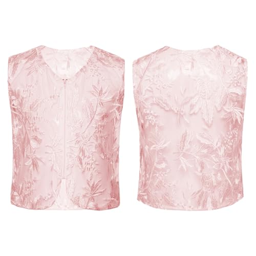 renvena Girls Lace Embroidery Vest V Neck Sleeveless Party Formal Dance Waistcoat with Front Zipper 4