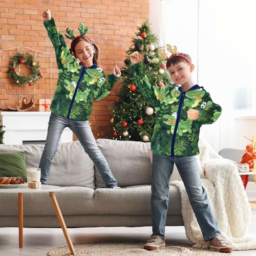 Cute Green Crocodile Pattern Toddler Fleece Jacket Girl Boys Hooded Fleece Jacket Coat Warm Outwear Zip-up 3-10T 3