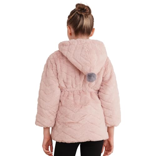 JanJean Toddler Girls Faux Fur Fleece Hooded Jacket Winter Thick Warm Zip-up Coat Outwear Full Winter with Rabbit Doll 6