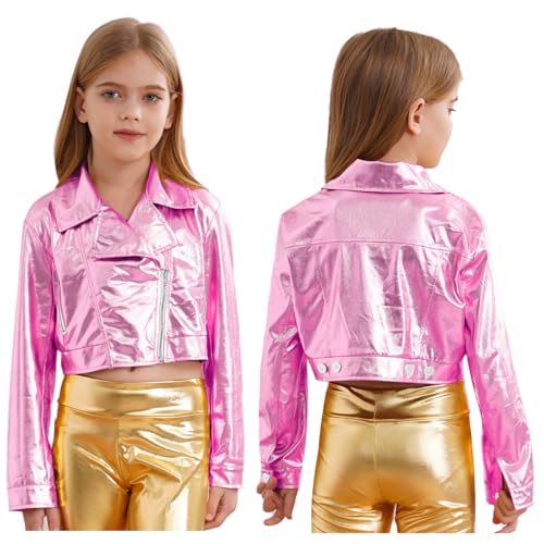 Kids Girls Shiny Metallic Biker Motorcycle Jacket Coat Long Sleeve Jazz Hip Hop Dance Tops Windbreaker Outwear 4