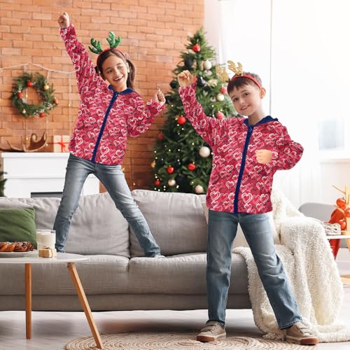 Valentine's Day Hearts Girls Fleece Jacket Girls Fall Jacket Girls Zip Up Hoodie Girls Sherpa Jacket 2-10T 6