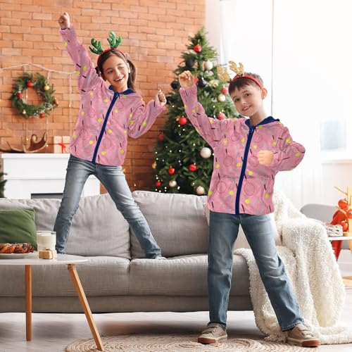 HOT ! Tennis Rackets and Balls in Cartoon Style Girls Fleece Jacket Girls Fall Jacket Girls Zip Up Hoodie Girls Sherpa Jacket 2-10T