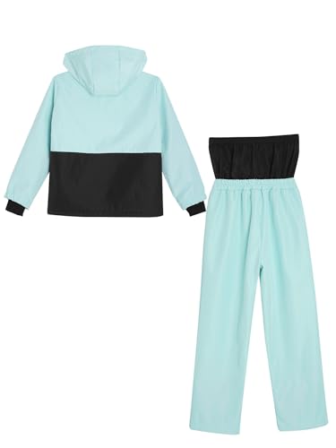 YiZYiF Kids Girls Winter Thick Warm Snowsuits Long Sleeve Color Block Hooded Jacket and Pants Ski Suit 5