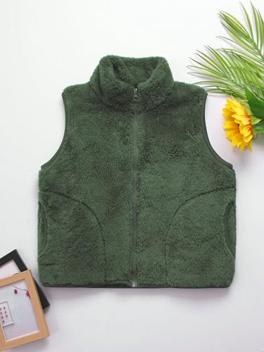 Girls Boys Kids Zip Up Vest Coat Fuzzy Polar Fleece Flannel Warm Jacket Sleeveless Stand Collar Outwear 6