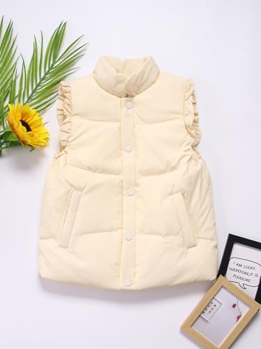 Girls Kids Cute Puffer Vest Toddler Sleeveless Down Jacket Casual Ruffled Cuffs Coat Winter Warm Outerwear 6