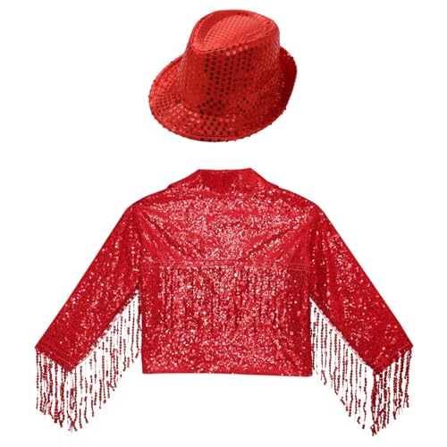HOT ! Children Girls Cropped Jacket Modern Hip-hop Jazz Street Dance Tops Sequins Bolero Shrug Cardigan