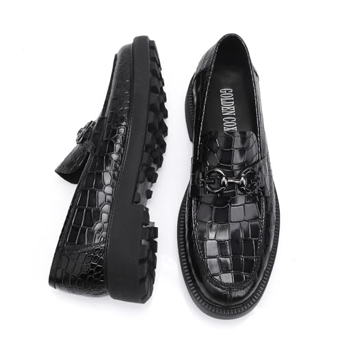 More information about Premium Mens Leather Dress Shoes, Classic Casual Crocodile Printed Business Buckle Dress Slip on Penny Loafer Party Wedding Shoes for Mens, Black, 11