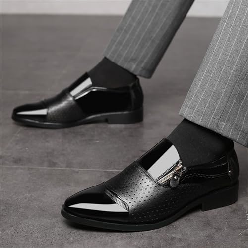 Men's Breathable Zipper Penny Loafers Slip On Driving Boat Business Casual Oxford Patent Leather Dress Shoes 6