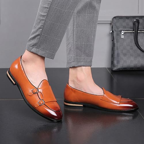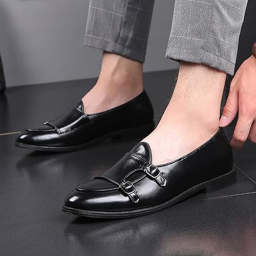 Men's Slip-on Dress Oxford Shoes,Pointed-Toe Low-top Double Monk Strap Black Patent Leather Business Casual Singles 6