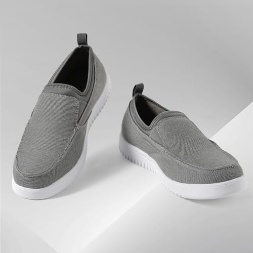 Mens Casual Slip On Shoes - Comfortable Canvas Loafers - Lightweight Boat Shoes for House Outdoor Driving Travel Grey 8 6