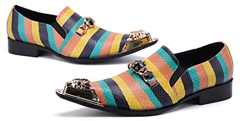 Santimon Men's Dress Driving Loafers Striped Classic Beaded Genuine Leather Slip On Formal Metal Pointed Toe Wedding Party Shoes 7