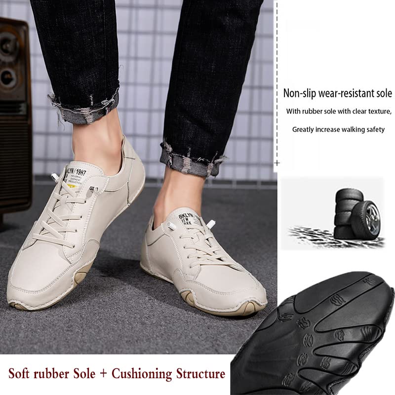 Mens Vintage Handmade Low Slip on Loafers Fashion Soft Leather Non-Slip Breathable Driving Walking Flats Chukka Ankle Booties (White,10,Men,10) 4