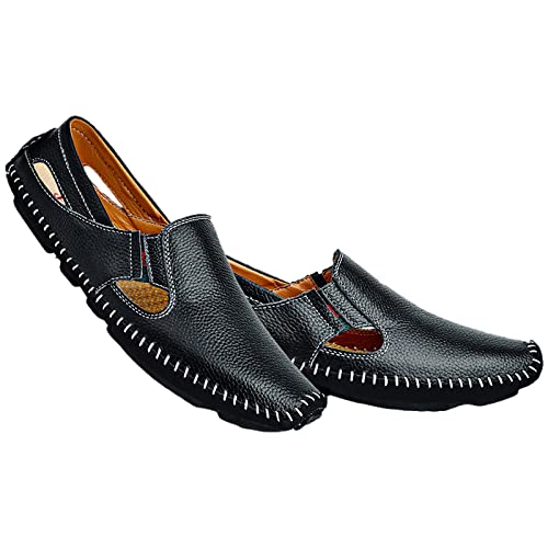 rismart Men's Leather Driving Loafers Comfort Slip on Moccasin Walking Shoes 6