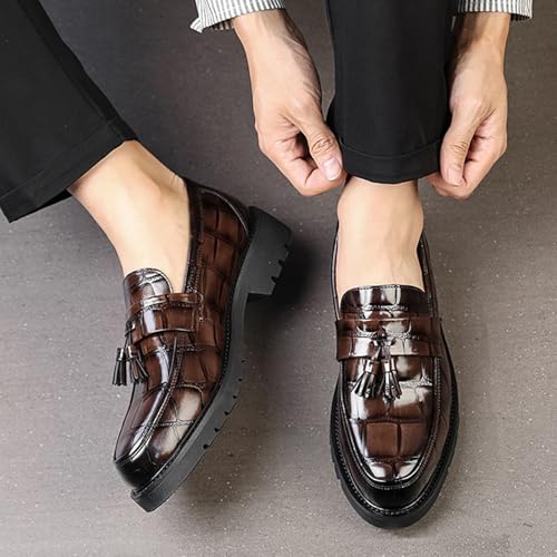 Men's Fashion Tassel Dress Loafers Luxury Round Toe Slip-on Low Top Formal Business Work Penny Shoes Daily Breathable Non-Slip Casual Shoes 7