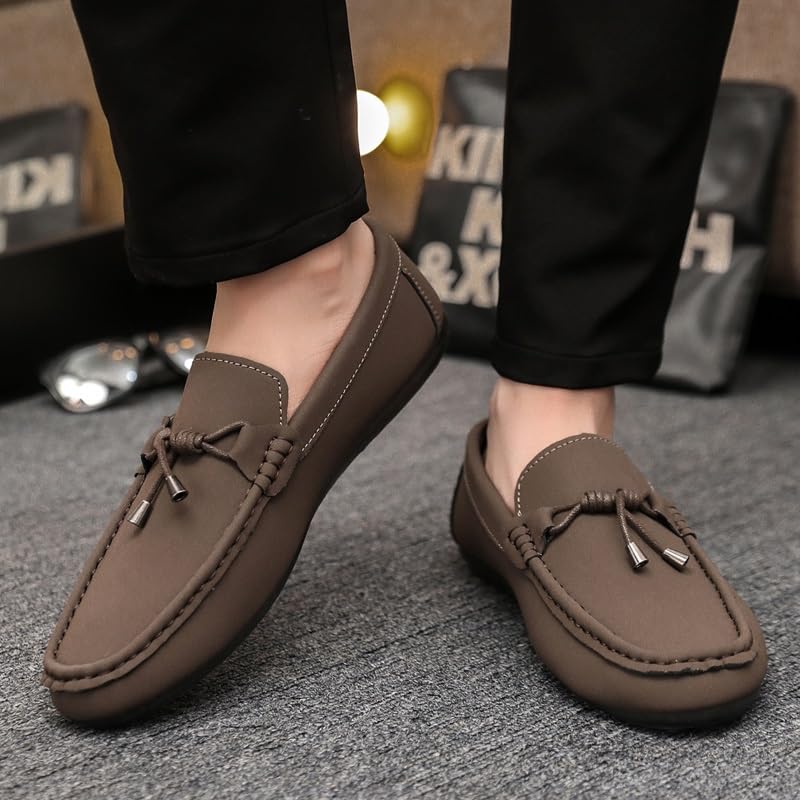 Men's Loafers Square Toe Solid Color Loafer Shoes Flat Heel Resistant Anti-Slip Walking Fashion Slip On 6
