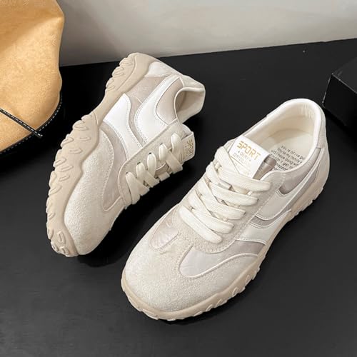 HOT ! Womens Fashion Sneakers for 2025 Suede Lace Up Fashion Sneakers for Women – Casual Chic and Comfortable for Street Strolling Campus Activities (Red White,5)