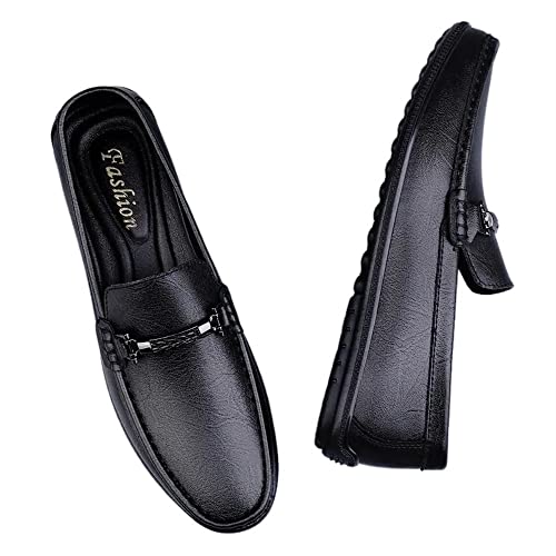 HOT ! Men's Loafers Penny Loafers Solid Colors Lightweight Leather Flat Heel Lightweight Comfortable Outdoor Slip-ons(Black,10 M US)