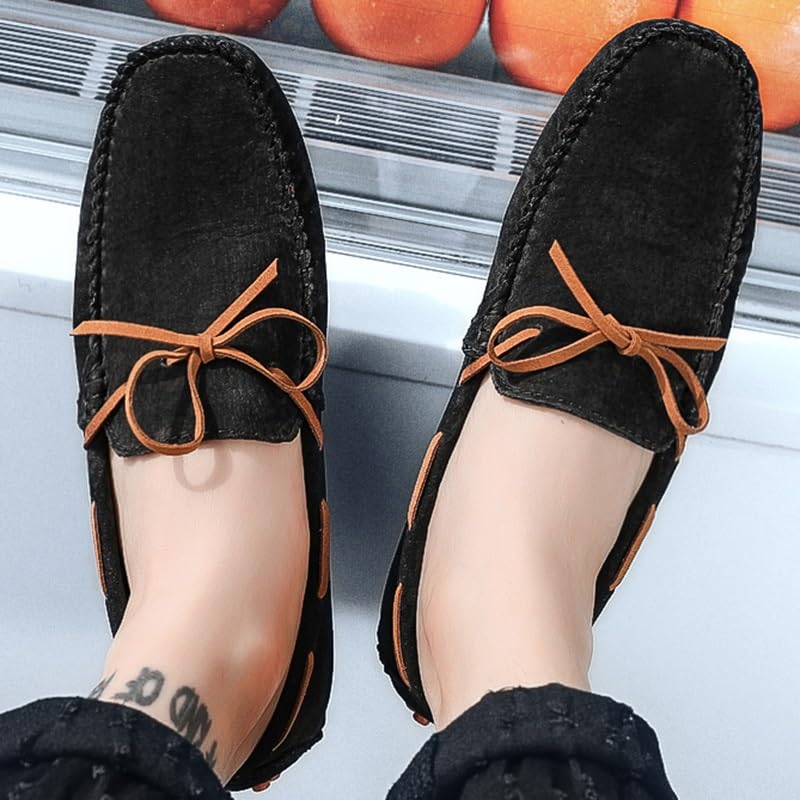 HOT ! Mens Loafers Round Toe Suede Vamp Driving Loafers Boatshoes Anti-Slip Comfortable Slip Resistant Fashion Party Slip-on