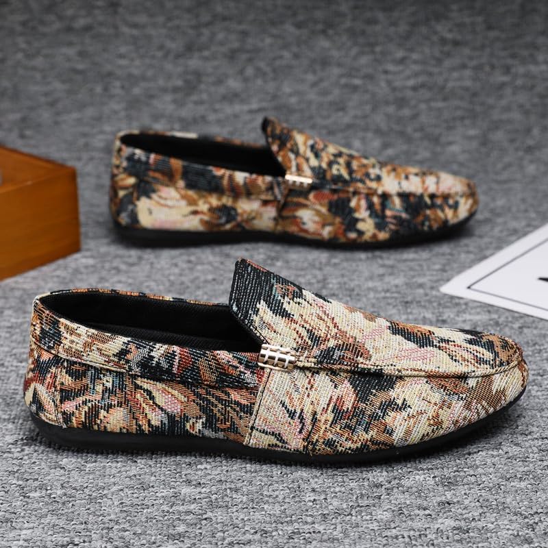 HOT ! Mens Loafers Round Toe Cloth Floral Embossed Loafer Shoes Flat Heel Lightweight Slip Resistant Prom Slip-ons