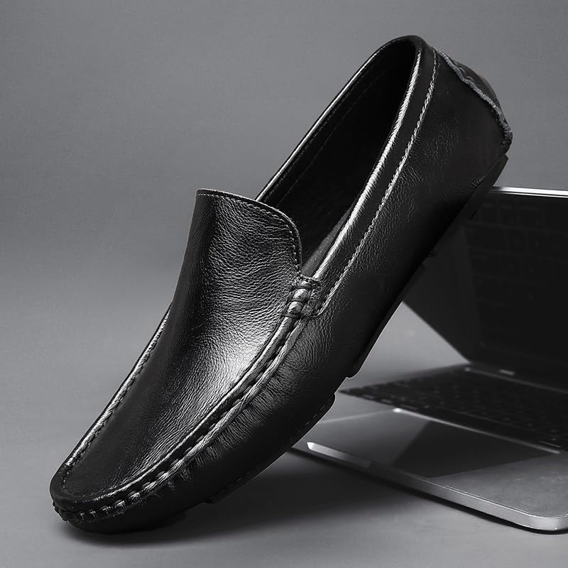 Loafers for Men Solid Color Round Toe Faux Leather Driving Loafers Flexible Lightweight Flat Heel Outdoor Slip On 6