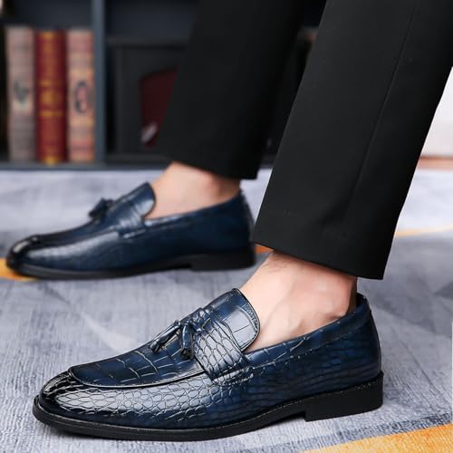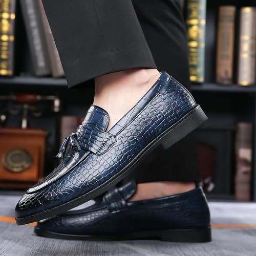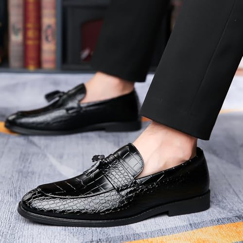 Men's Leather Textured Chunky Heel Loafers Retro Pointed Tassels Non-Slip Slip-On Business Work Wedding Formal Shoes 7