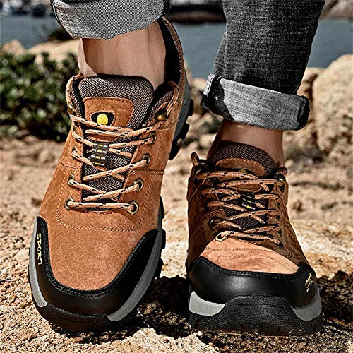 GEXECEUSS Hiking Boots for Men Breathable Non-Slip Casual Low-Top Sneakers for Trailing Trekking Outdoor Leather Walking Shoes 7